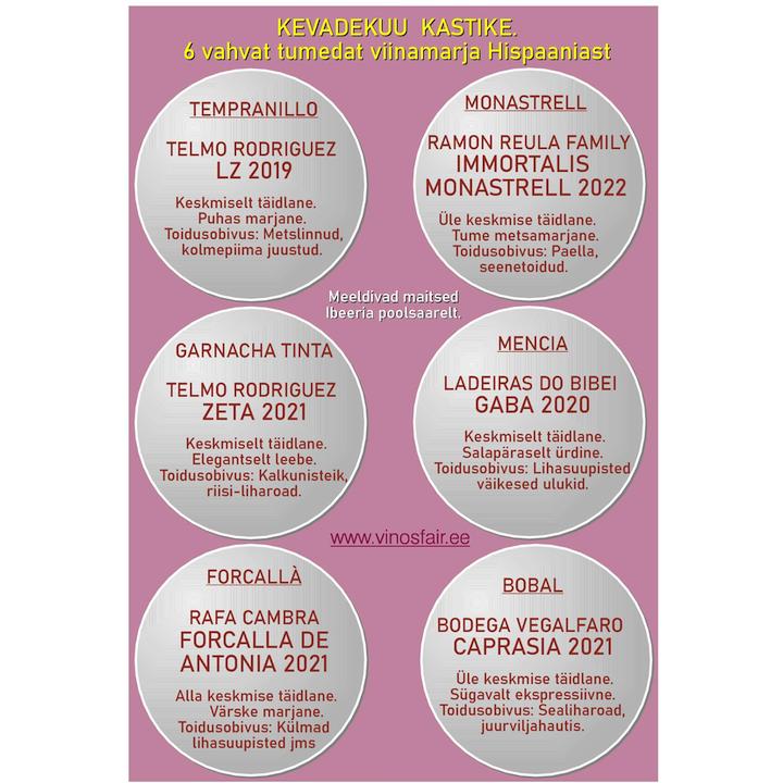 Punaste veinide kastis on kuus veini tumeda kestaga Hispaania põlistest veinimarjadest : Tempranillo, Mencía, Bobal, Monastrell, Garnacha ja Forcalla.